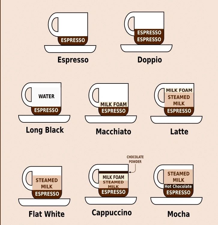 Coffee in Australia is different. Here's a helpful chart I dearly wish someone in the airport had shoved in my face and emphatically said to read (Courtesy Let's Do Coffee).